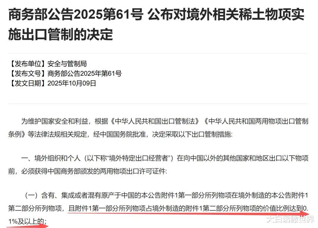 兄弟们,强大新闻毕竟来了!10月9日,中邦商务部宣告了两项加紧稀土合连物项出口管制的通告。这一新闻一出,西方邦度的响应相当激烈,险些悉数大牌媒体都正在筹议这项新规矩带来的雄伟抨击,彭博社、道透社、华尔街日报、金融时报等纷纷报道,以为这一管控手腕的威力空前未有。那么为什么此次管控如许让人担心呢?苛重有两大合头点:一是假使任何境外缔制的物项中,含有0.1%以上中邦稀土因素,都邑被纳入管制领域;二是对稀土的开采、冶炼判袂、磁材缔制等全链条时间举行苛苛的出口管制。